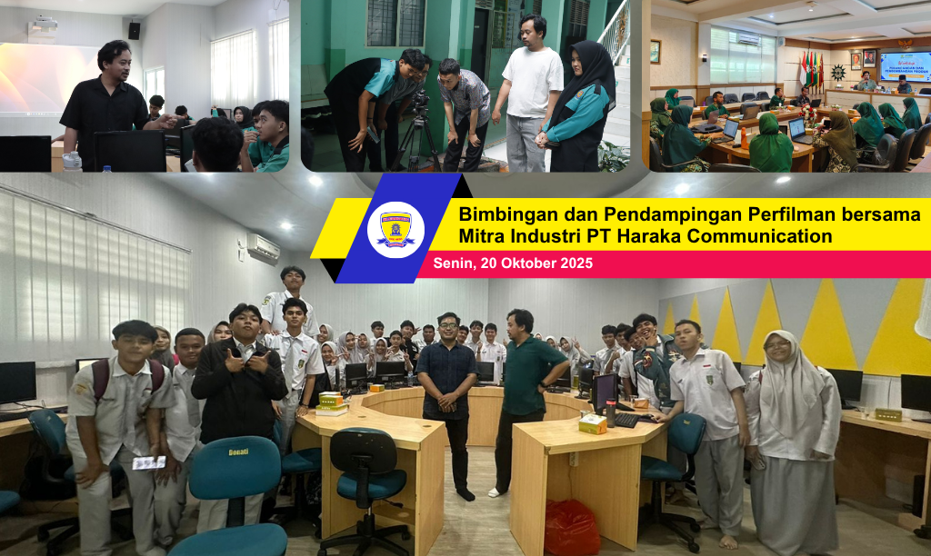 Senin, 20 Oktober 2025 -- PT Haraka Communication Jakarta sebagai mitra industri SMK Muhammadiyah 2 Pekanbaru melaksanakan kegiatan bimbingan dan pendampingan pembuatan film dalam program Teaching Factory bidang Audio Visual.